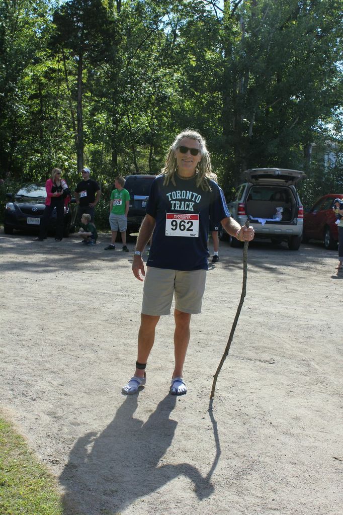 …and breezed to a first place finish on a hilly course in 18:02